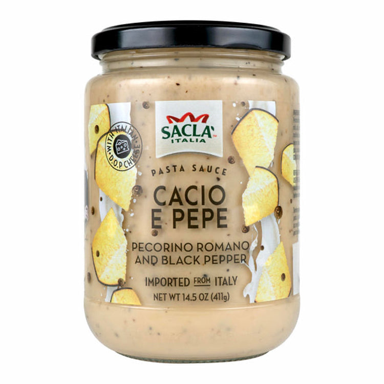Enjoy the iconic Roman pasta dish in minutes with SACLA Cacio e Pepe Sauce. Made in Italy using a traditional recipe, this creamy sauce combines rich cheese - including Pecorino Romano - with freshly ground black pepper for a bold, balanced flavor. It delivers the comforting simplicity of classic cacio e pepe without the need to prep or cook from scratch. From SACLA - Italy’s trusted family-owned brand since 1939 - this gourmet pasta sauce is non-GMO, free from artificial preservatives, and ready to heat and serve. Use it with tonnarelli, spaghetti, gnocchi, or even vegetables for a restaurant-quality meal in minutes.